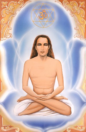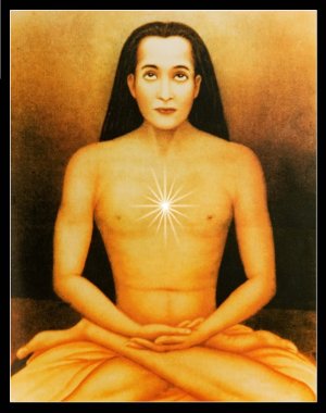 om-babaji“Before I had recovered from my bewilderment, I was further wonder-struck to behold a circling mass of mystical light traveling in the sky. Descending swiftly, the flaming whirlpool neared our group and materialized itself into the body of a beautiful youth who, I understood at once, was Babaji. He looked like Lahiri Mahasaya, the only difference being that Babaji appeared much younger, and had long, bright hair.
