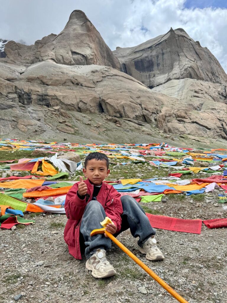 The second day, I felt I might collapse from exhaustion. My body, almost entirely water, threatened to dissolve in rivers or under the Tibetan sun. Yet, instead of resting, I pushed forward. I fell into a river; the stones around me were white, smooth, warm, and gentle. My Sherpa reached a hand, yet I lingered a moment longer. Cold water hit me to the bone, and I leapt out, half-soaked, changing into dry boots, moving onward. Hours passed in silence, memories surfacing of moments I had lost my voice for no reason. Tears, thirst, exhaustion — and it all passed.
