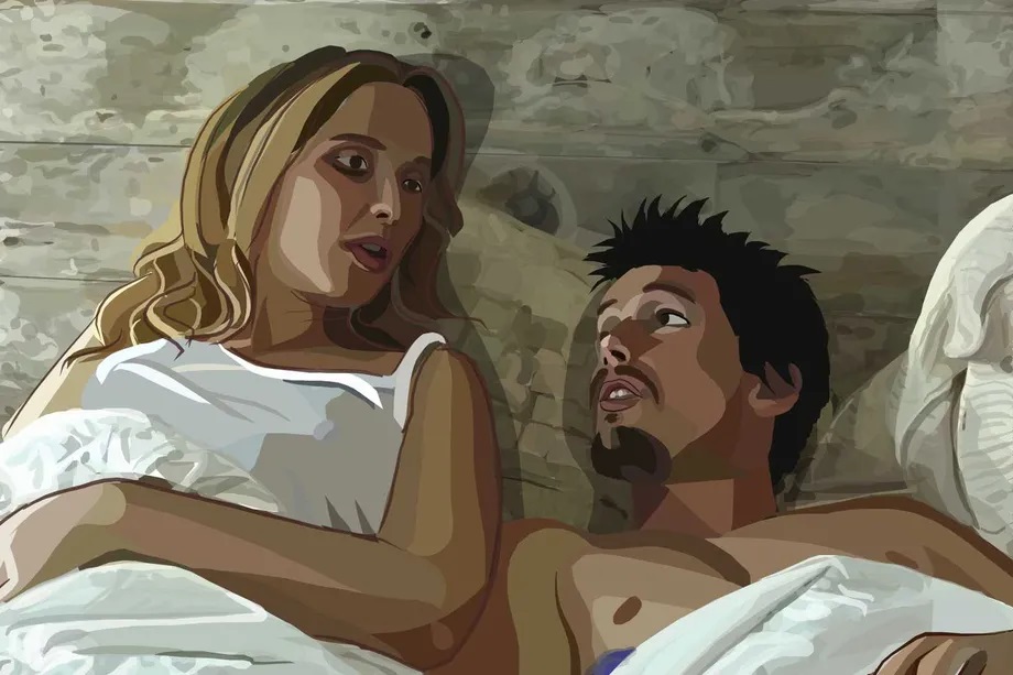 Richard Linklater is known for his interest in the less quantifiable aspects of existence. He often works it into the narrative or theme of his films. The Before trilogy featured these two characters and are, in themselves, engrossing dialogues. But it was my first experience with a later film of his titled Waking Life, where I first met these two characters. In this slightly psychedelic film, Linklater goes through a stream of consciousness narrative about the nature of reality and lucid dreaming, as well as our relationship with the idea of inertia and death. In one of the scenes, we cut to a couple lying in bed, with colourful rotoscopic-like animation creating a visually-subtle psychedelia.